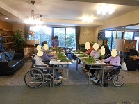 職員がご入居者様に三線の弾き語りで沖縄民謡を