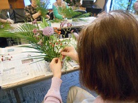 レモンリーフにアレカヤシと秋らしい紫を中心