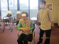 嘔吐物の処理の実技研修も行い、実際に起こった時に、