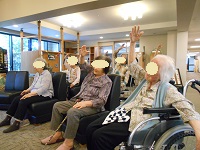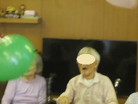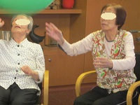 14時からのレクリエーションは風船バレーを行い