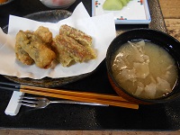 山形名物、芋煮、シソを巻いた天麩羅、かぼちゃのいとこ煮