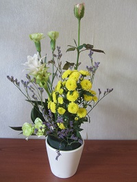黄色の小菊、ミニ薔薇などを使い秋らしい素敵な作