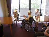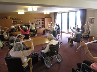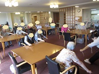 お食事前に音楽体操、口腔体操、転倒予防体操を