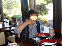 皆様揃って、フルーツ白玉あんみつを召し上がり