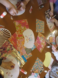 千代紙と折り紙で、お好きな絵や文字を描いて、