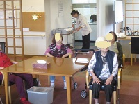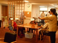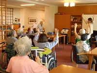 音楽に合わせて振り付け体操等、ワイワイガヤ