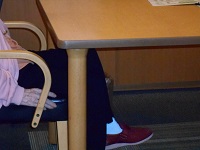 転倒予防はもも上げやつま先、踵上げ。口腔体操