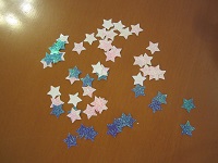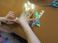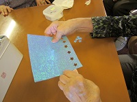 ハサミで紙を切ったり、型抜きで抜いたりと、