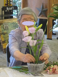 今日は、月に一度のフラワーアレンジメントの日でした。