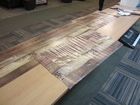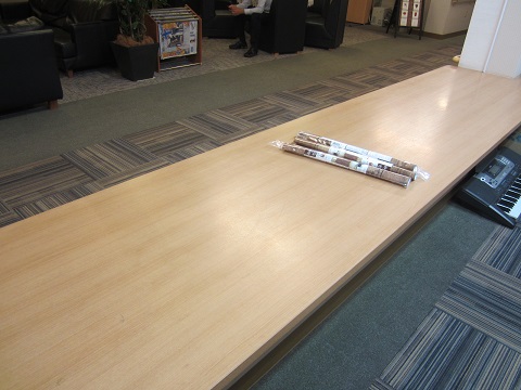 今回は、1Fラウンジのカウンターを模様替え、シーハーツカフェのための雰囲気づくりであります。