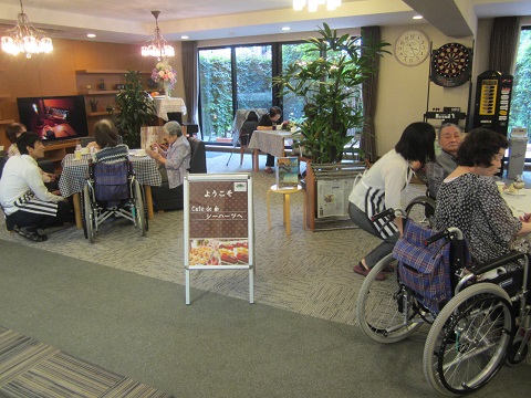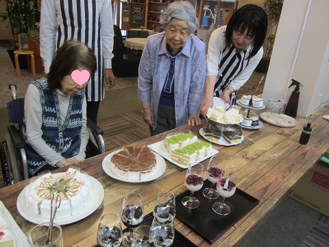 途中から、ご入居者様にもご参加頂き、美味しいケーキと珈琲で、ゆったりとした時間を過ごして頂きました。