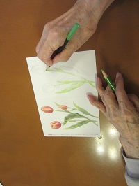 楽しみと日常リハビリを兼ねて、少し繊細なお花の絵の