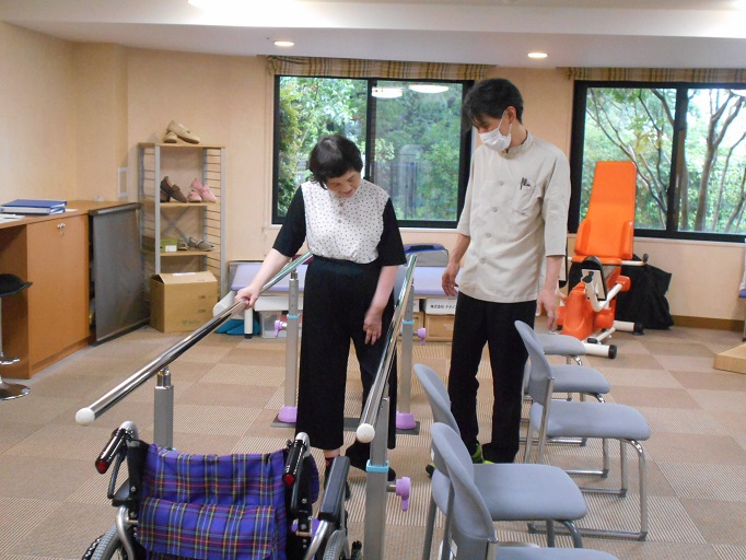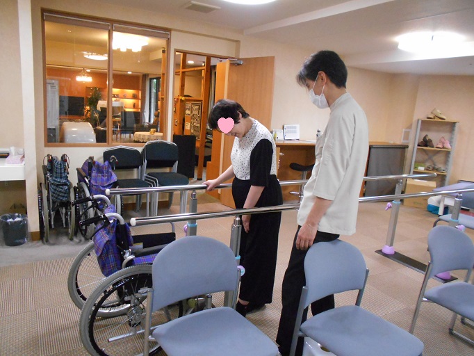 骨折による入院から、施設に一日も早く戻りたいとのご希望により、病院でのリハビリもそこそこにお戻りになられ、施設でのリハビリに励んでいらっしゃいます。