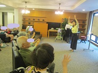 シーハーツ松戸の中は元気一杯、笑顔いっぱいで体操を