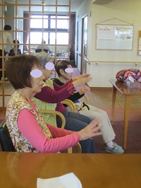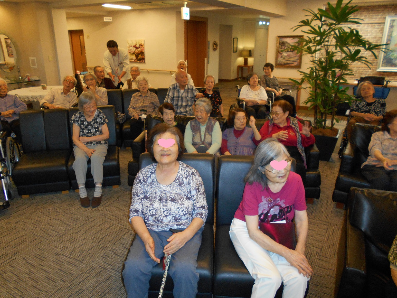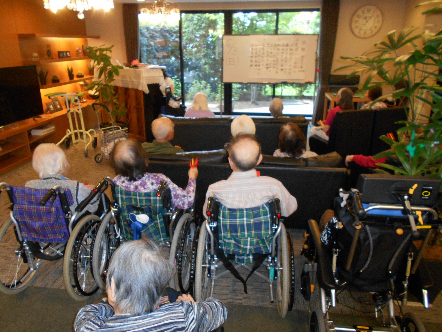 以前は、平日に行っていたのですが、平日はどの曜日にしても、入浴時間と当たってしまい、参加できない方がいらっしゃったので、数年前先生に無理言って、入浴のない日曜日に変更していただきました。