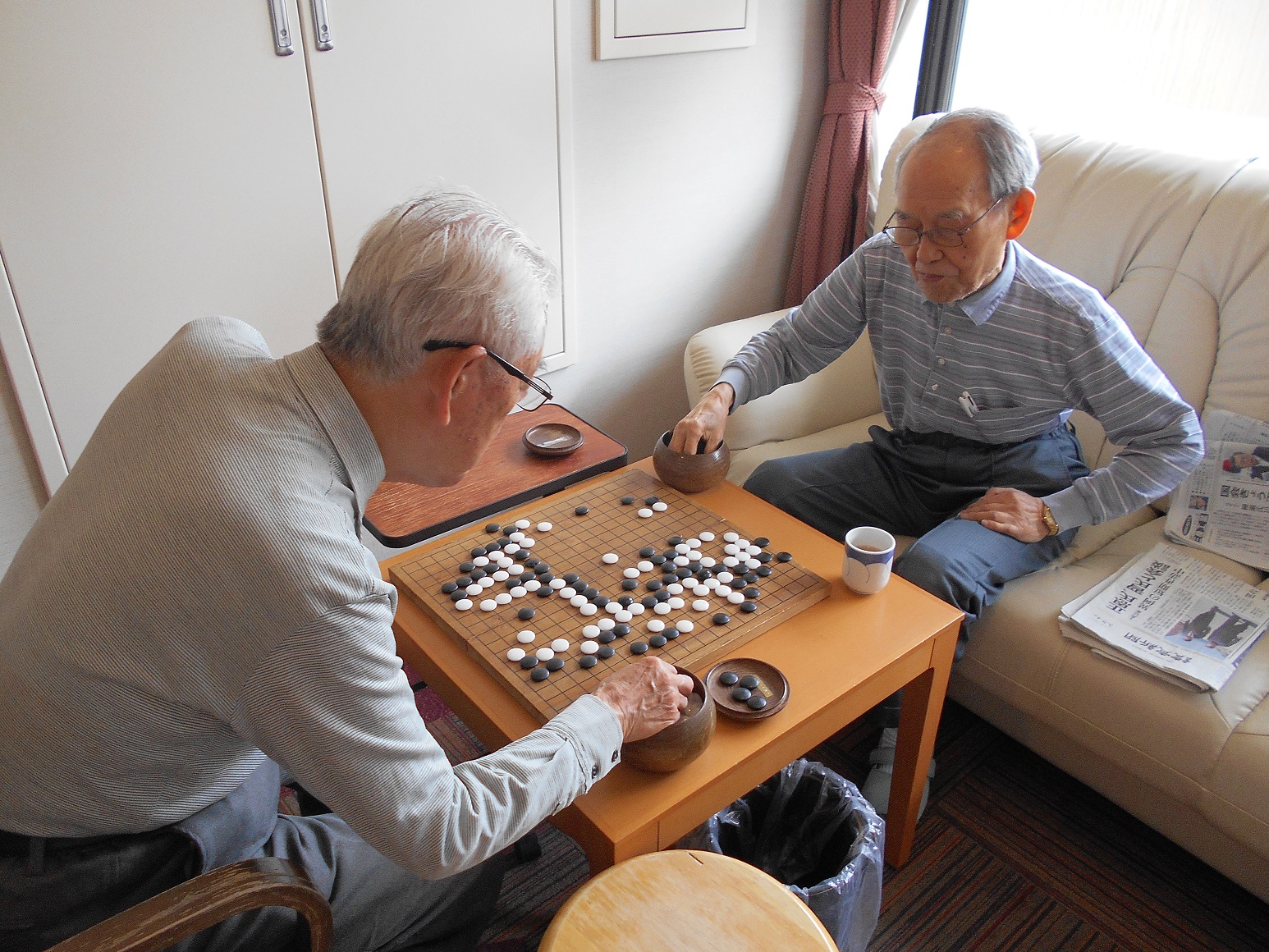 ハーモニカ演奏の傍らで、今日も囲碁が始まっていました。