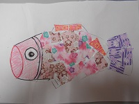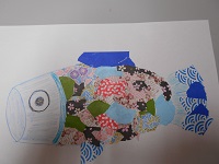 色紙や千代紙を使って、ちぎり絵の鯉のぼりを