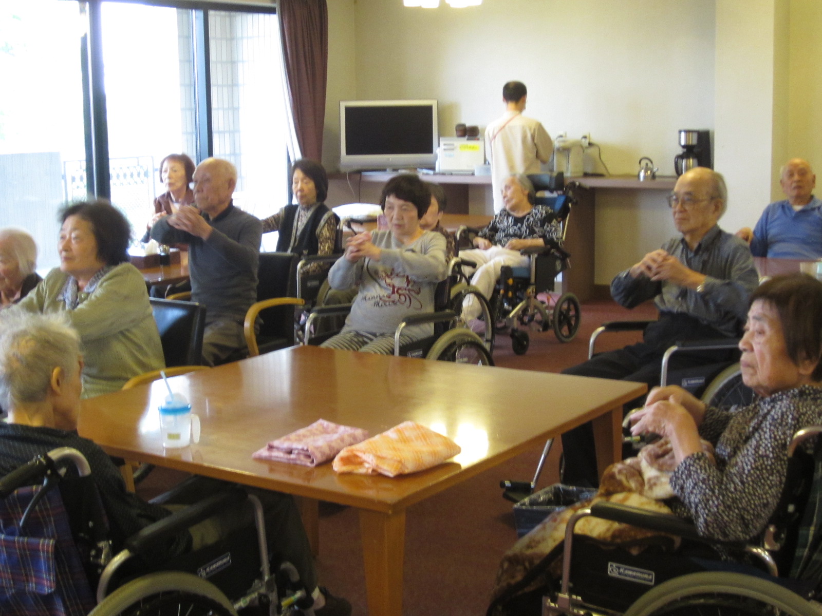 春の歌を中心に、歌謡曲、童謡を唄われ、また、体を動かし