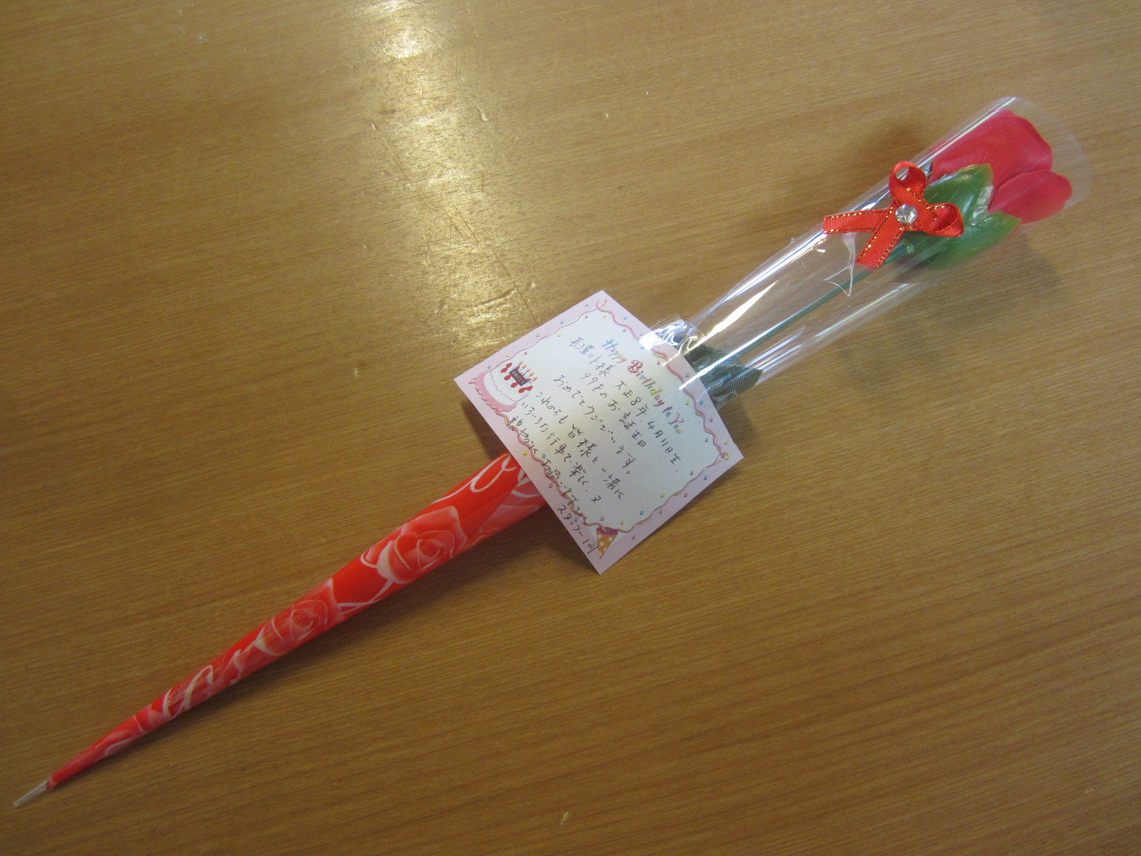 お祝いに、薔薇のつぼみの、ソープフラワーを
