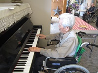 今日は、男性の入居者様が、ピアノを弾いて