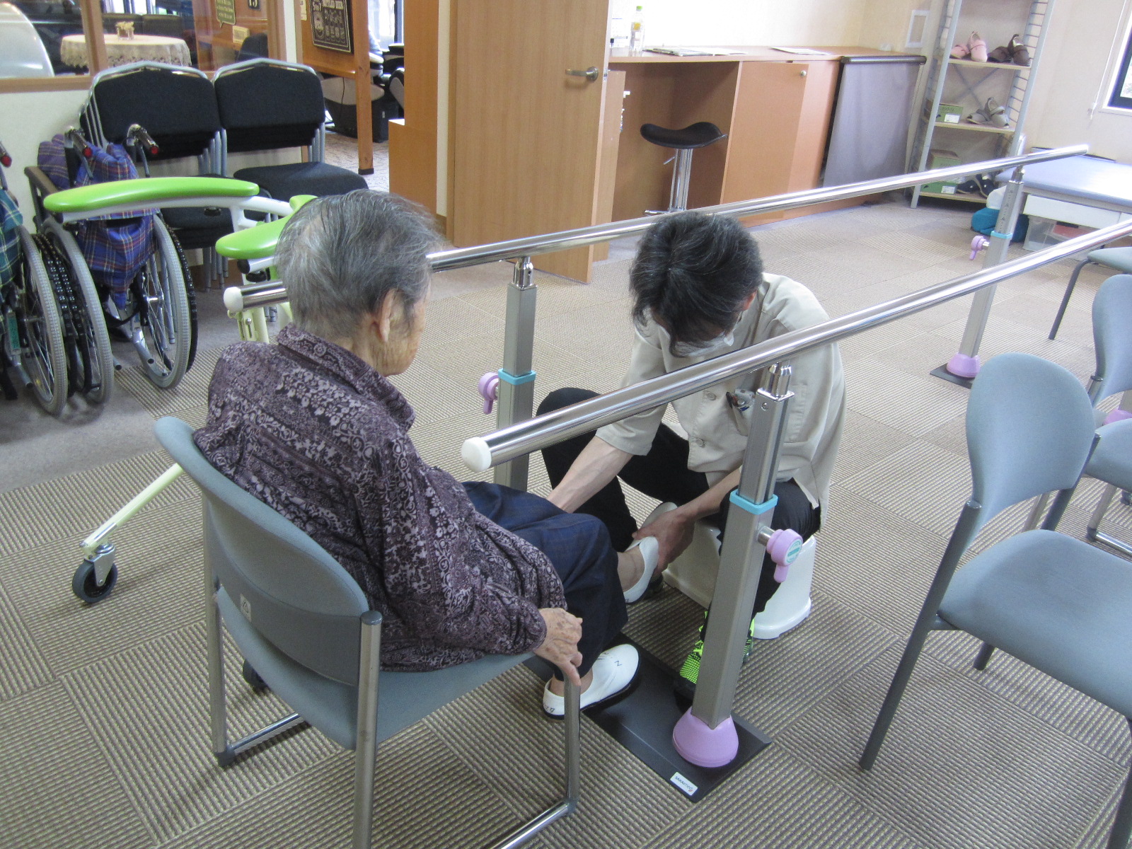 常に、ご入居者様のペースを計りながら、リハビリを計画しているようです。