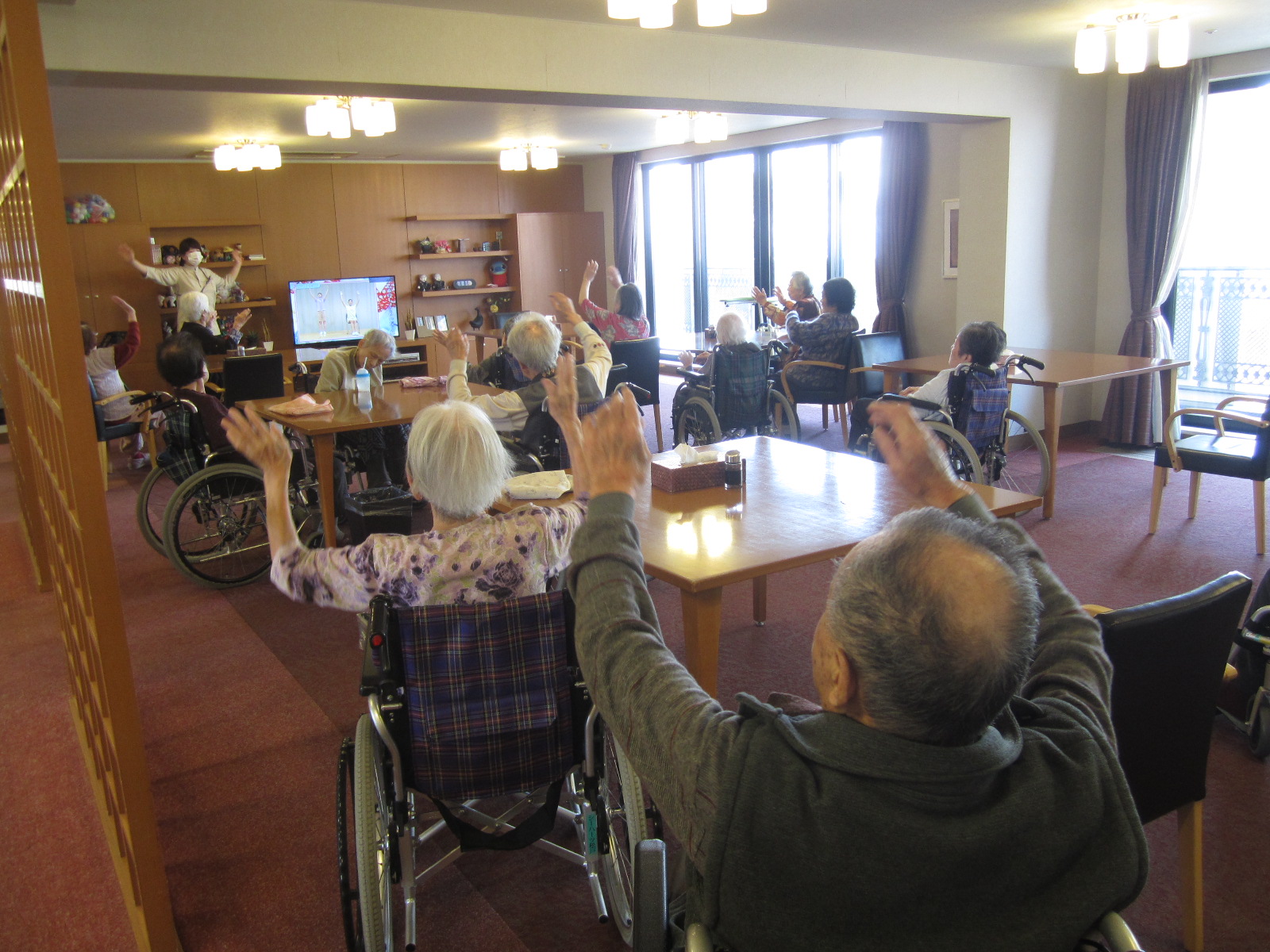 さてさて、こちらはお昼の体操風景です。