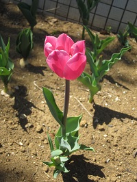 チュウリップが咲き誇り、皆様方のお散歩を、