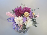 ガラスの花器が素敵で、先生のセンスの良さに、