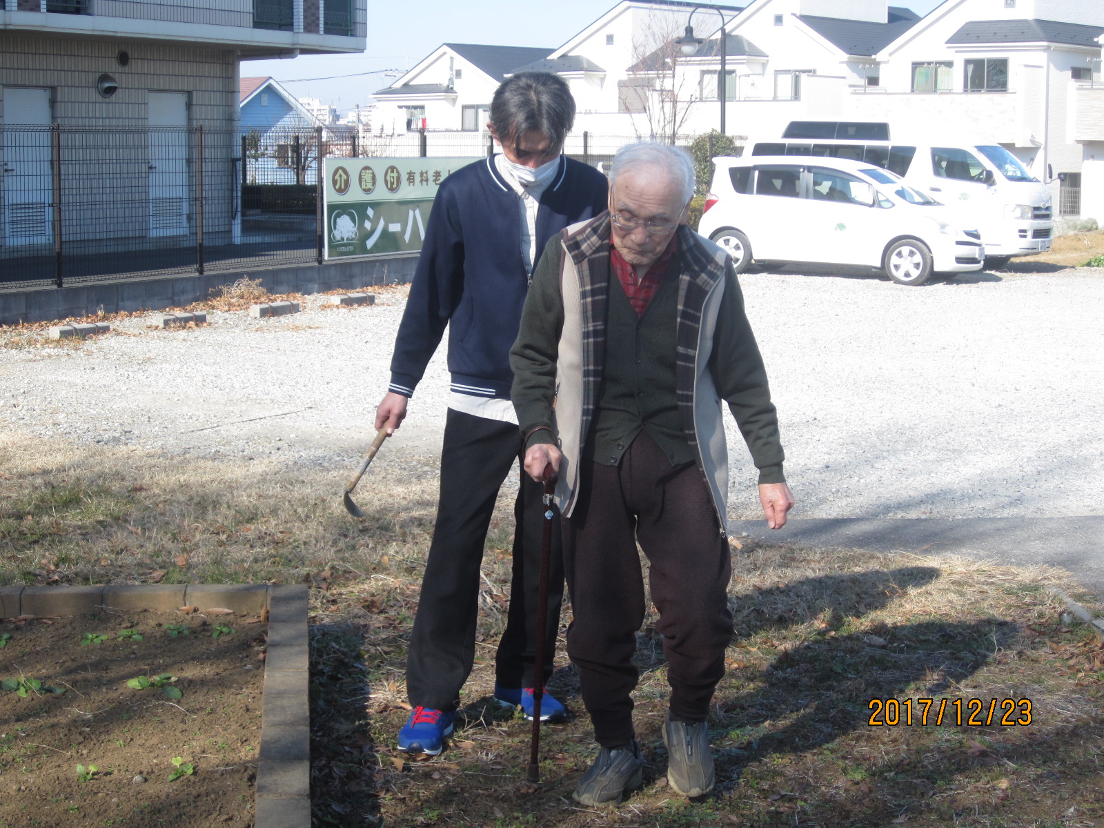 畑の中は育ってないのでやることがないため、今回は畑の周りを歩行練習。