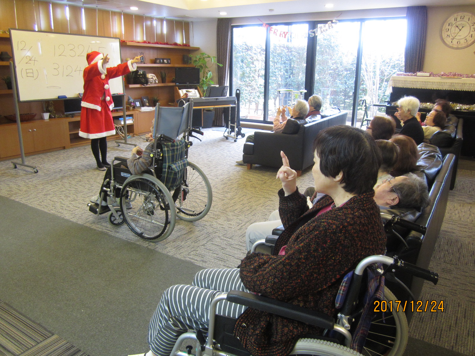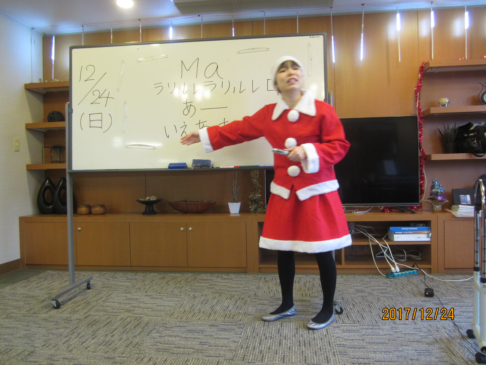 ちょうどクリスマスイブの日だったので、先生もサンタの衣装で登場!