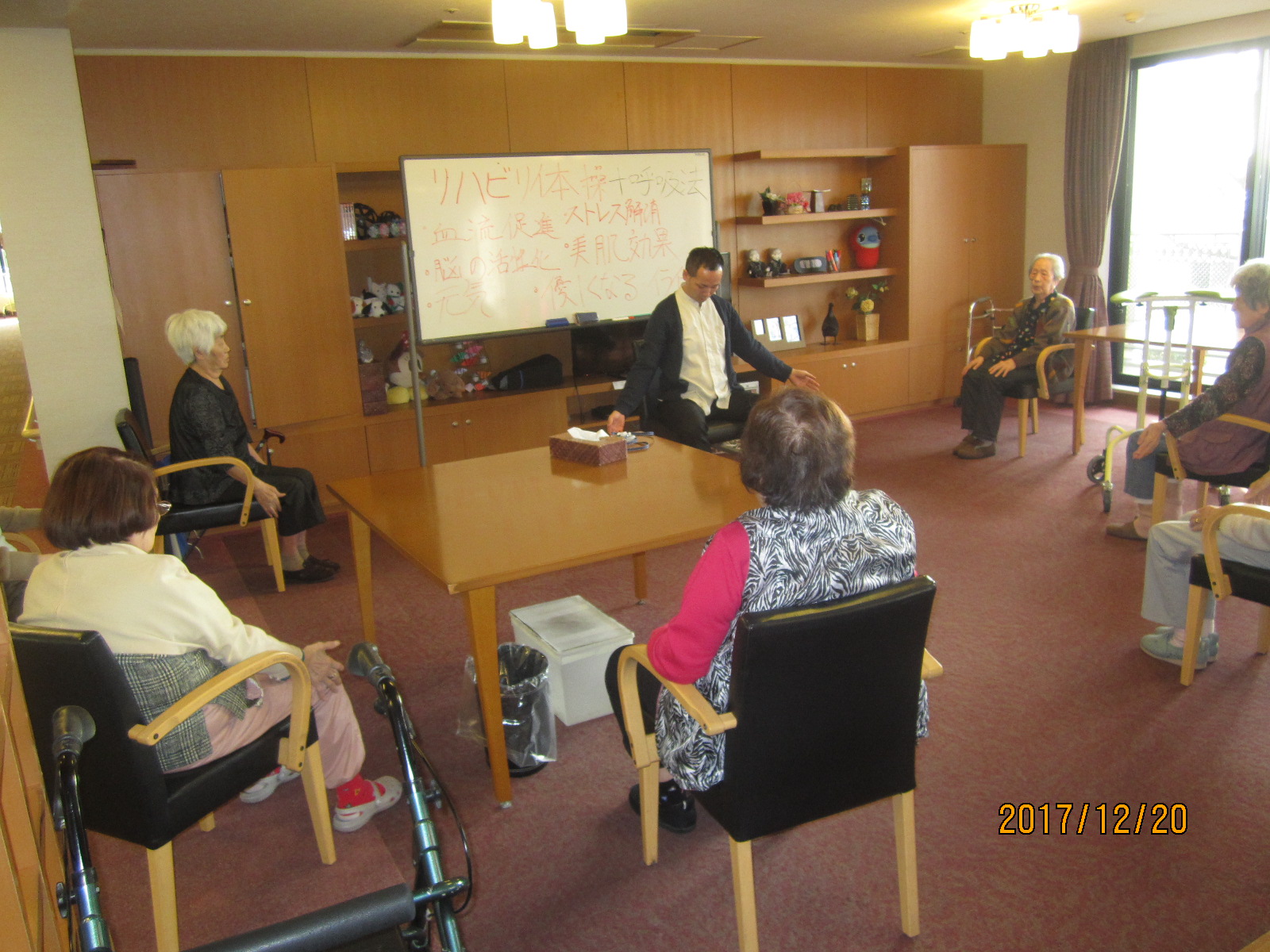 先日は、スタッフによるリハビリ体操と呼吸法教室を実施しました。