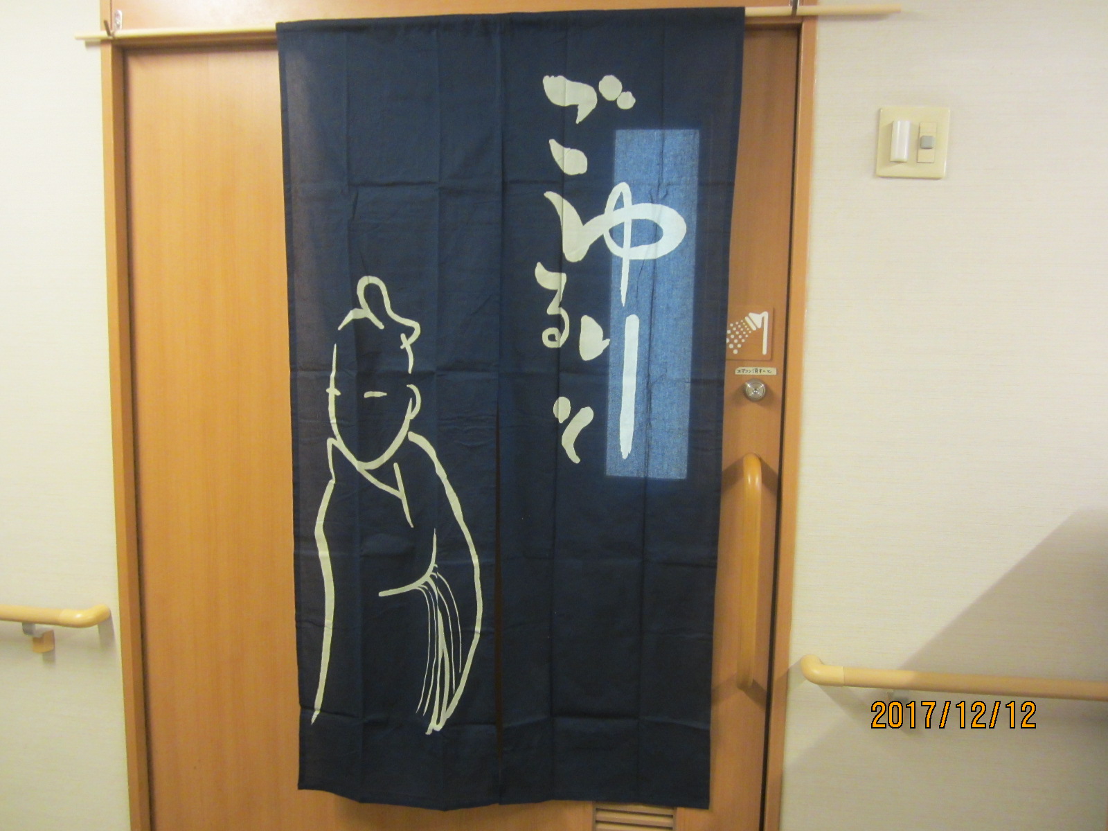 大浴場の雰囲気作りのため、銭湯風の暖簾を掛けてみました(^O^)/