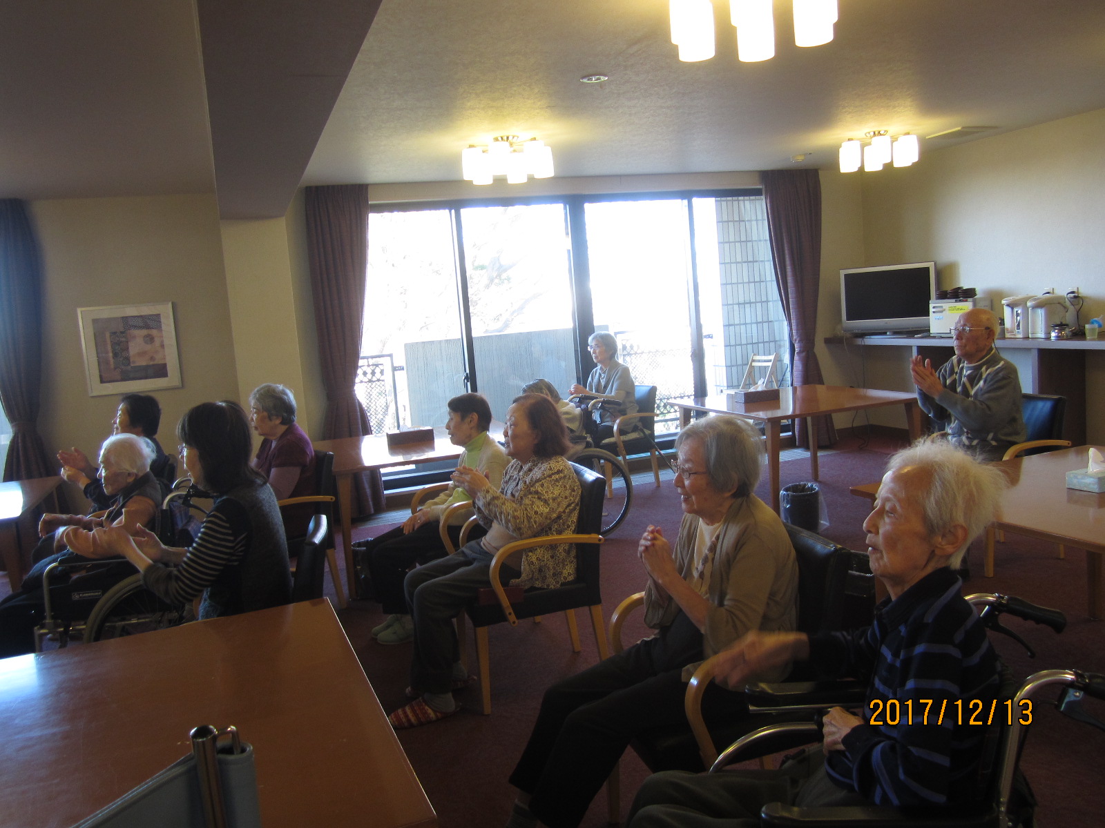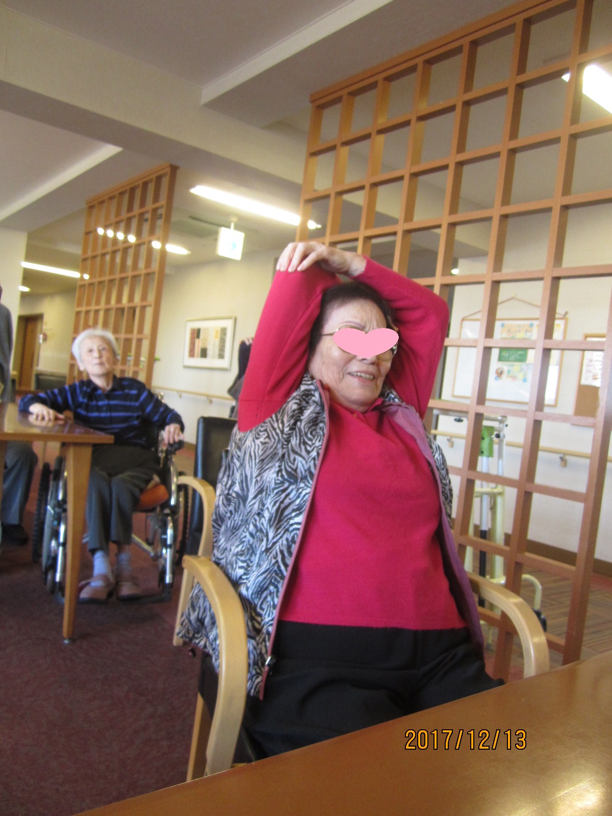 皆さま歌を歌いながら、前で見本となるスタッフの動きに付いてきてくださっています。