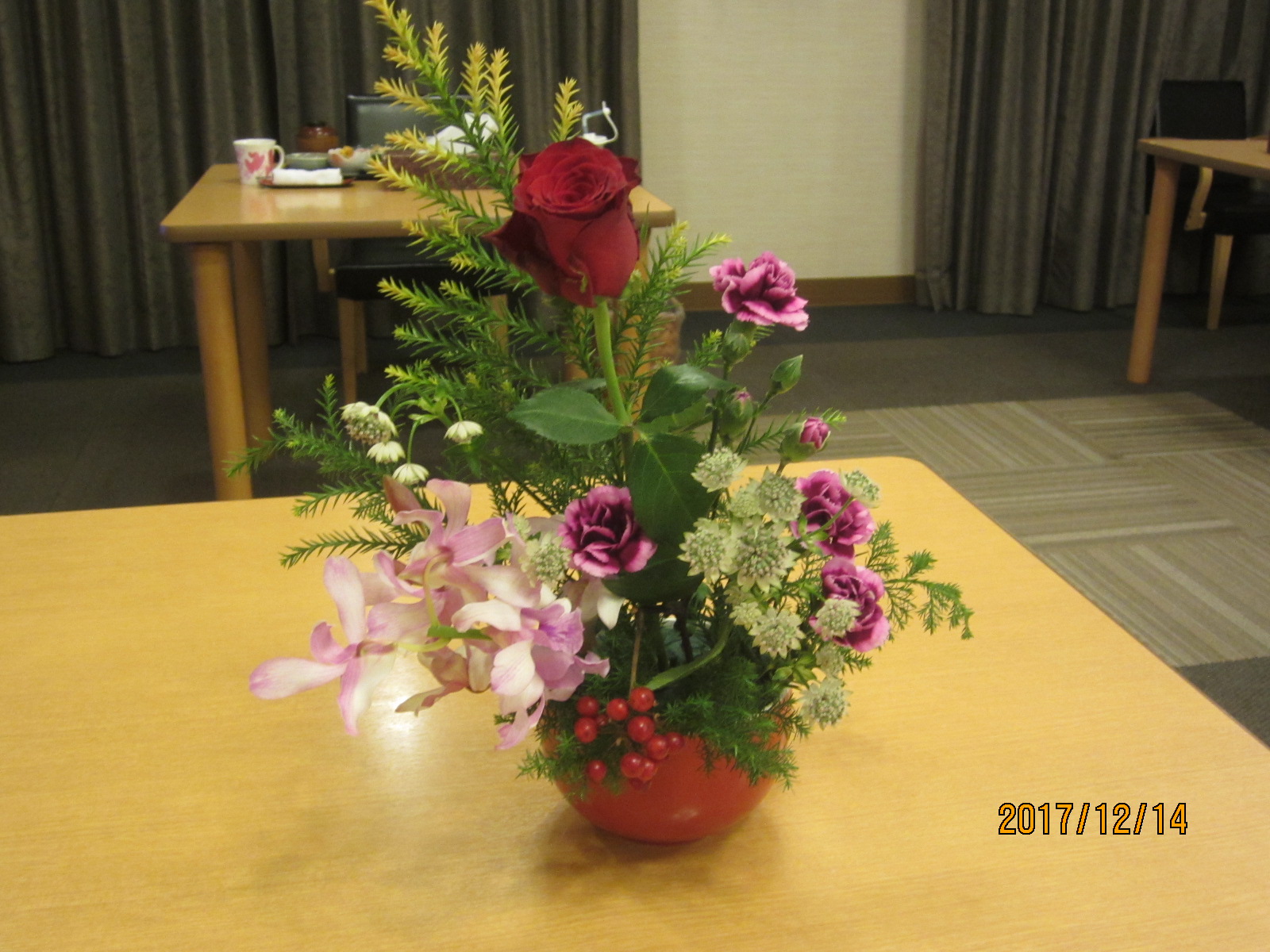 クリスマスが近くなったということで、もみの木のようなグリーンや深い赤の薔薇などを用意してくださいました。