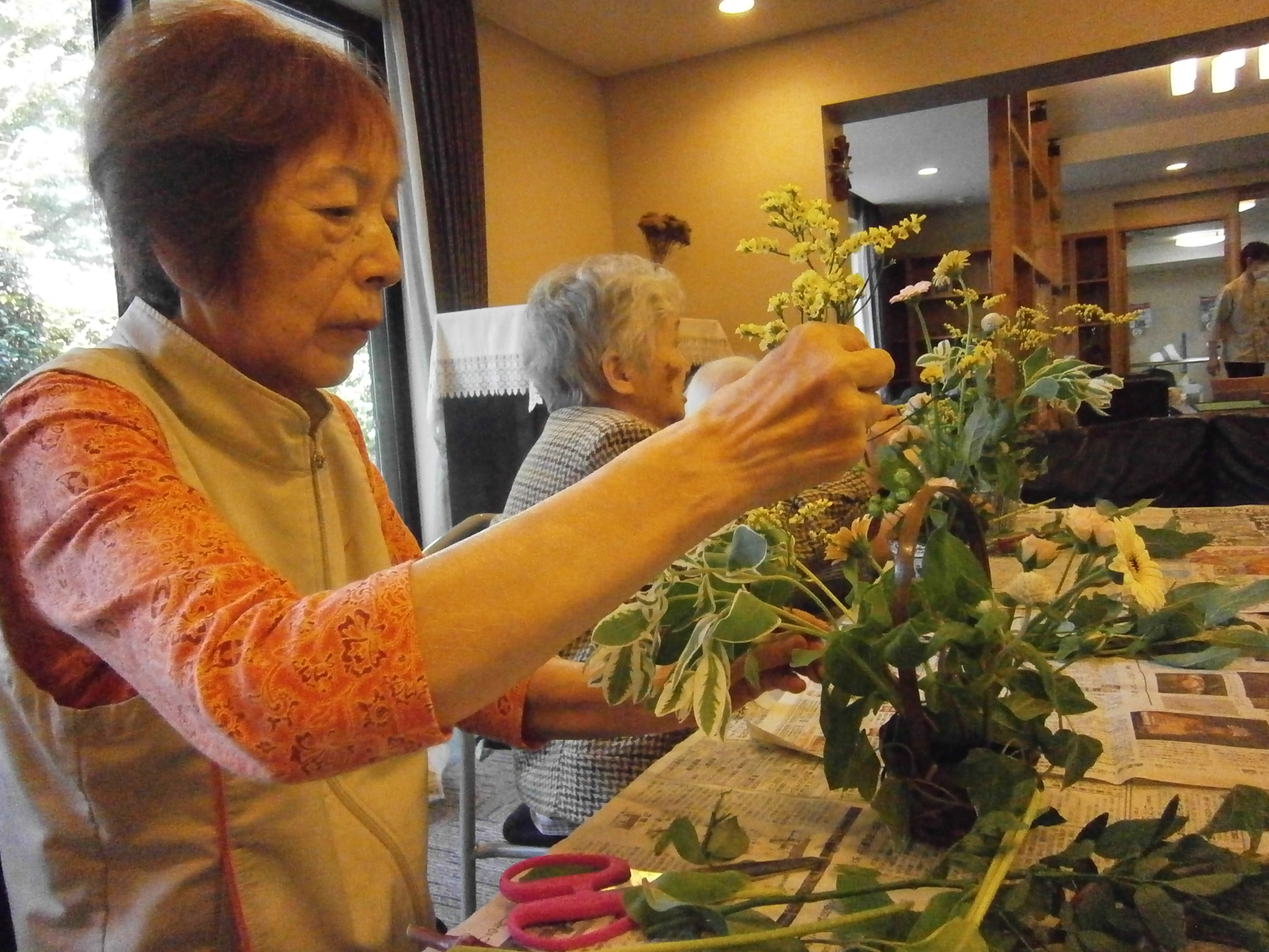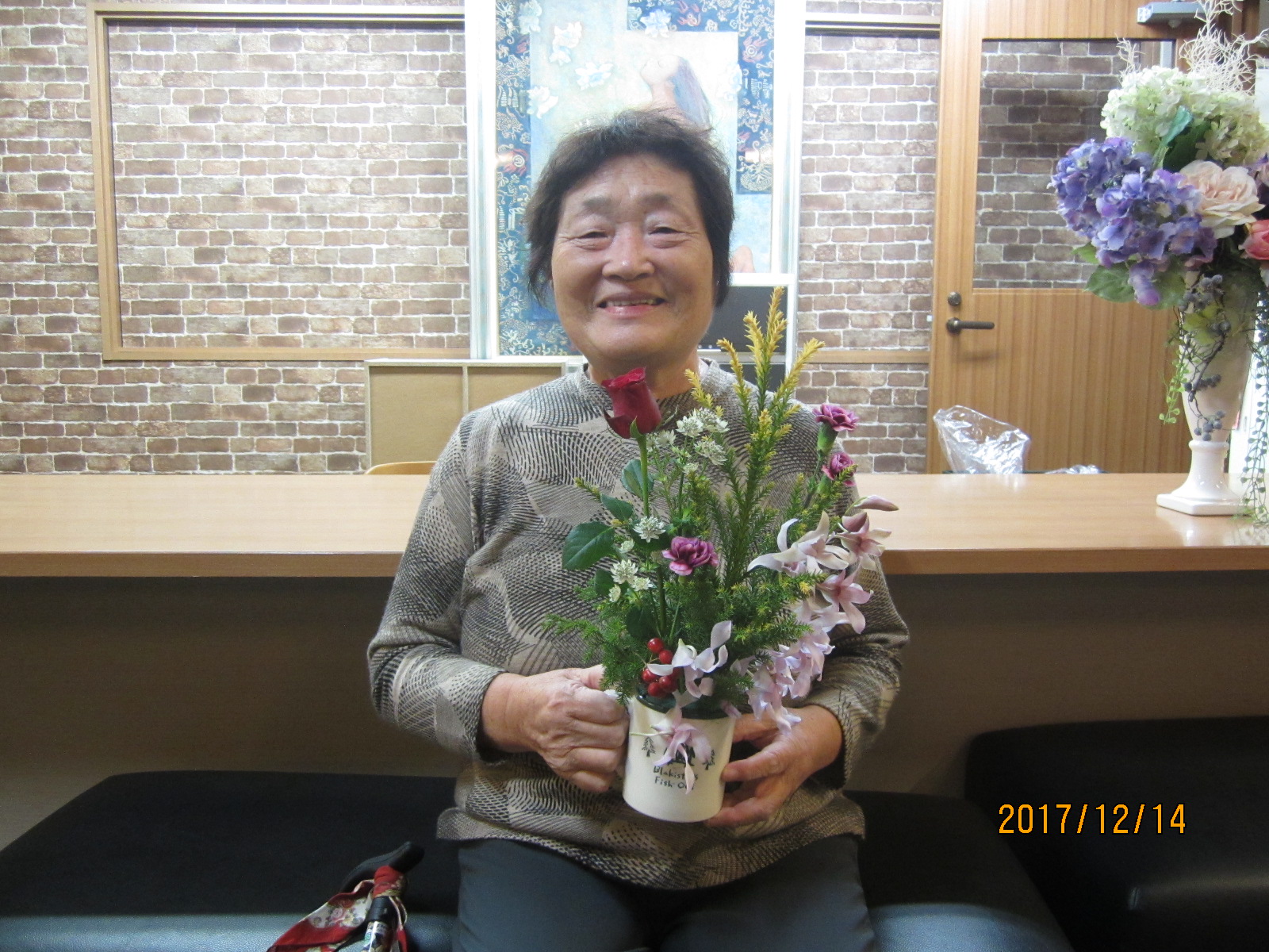 ほとんどやったことないと仰って、躊躇されていた入居者様も、何だかんだ上手にまとめて素敵なアレンジの出来上がり♪