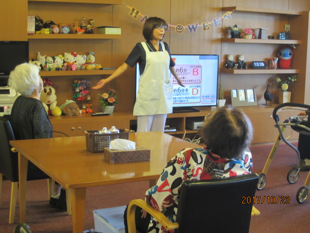 皆さんが楽しそうに体操している様子を見ていた口腔体操の歯科衛生士さん。