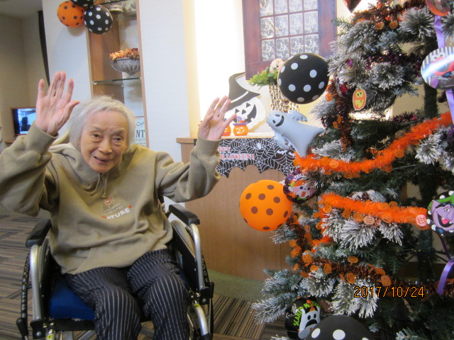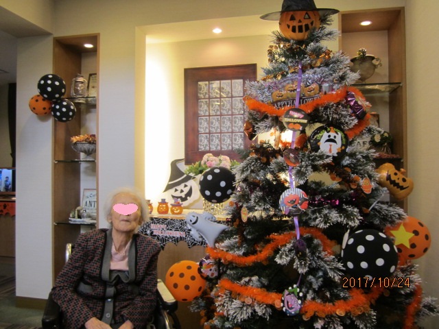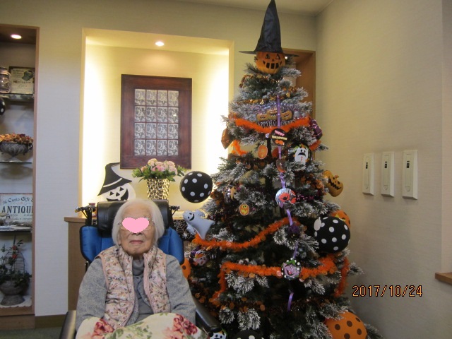 お戻りになって、ハロウィンツリーの前でも記念撮影しました。