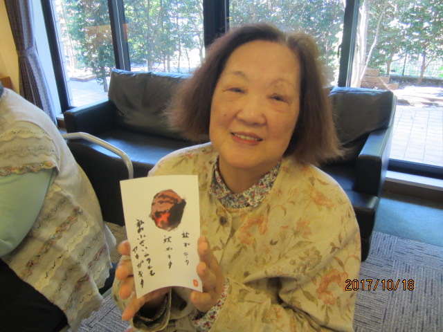 今回は、先生が絵手紙に押す名前のゴム印を、消しゴムで彫ってきてくださり、ご参加の皆様にプレゼント♪