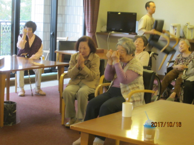 昨日は、歯科往診の日だったので、お昼の体操の後、口腔体操を行ってくださいました。