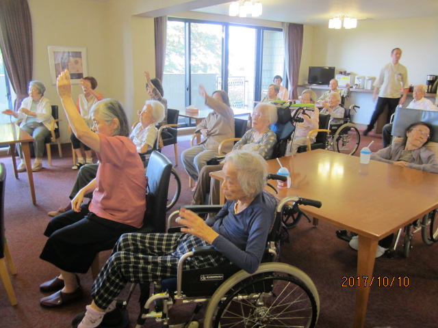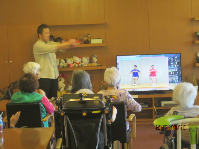 今日のお昼の体操は、男性スタッフ二人で担当。