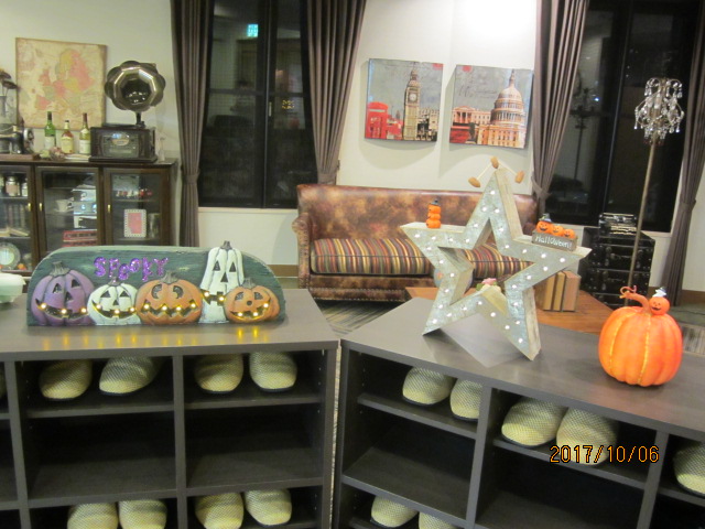というわけで、シーハーツ松戸もエントランスがハロウィンバージョンに。