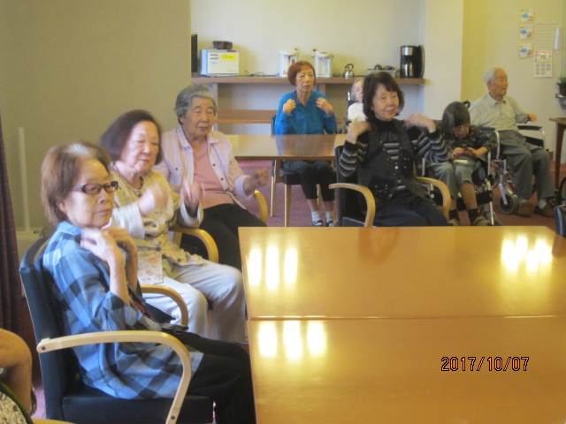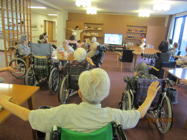 ご入居者のご家族様がレクで活用してほしいと、施設に寄付して下さったDVDで、皆様に楽しいんで頂きました。