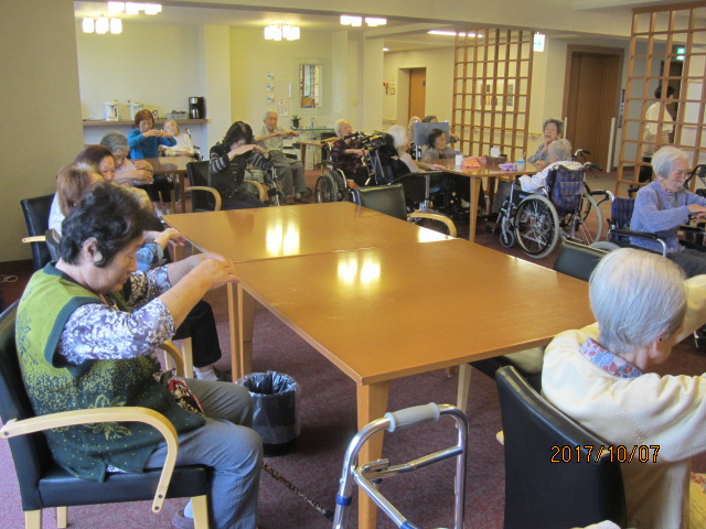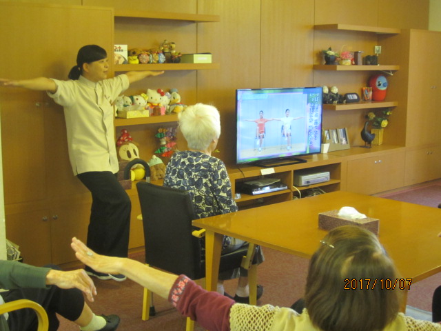 そして、ご入居者様もリズム良く、身体を伸ばしております。