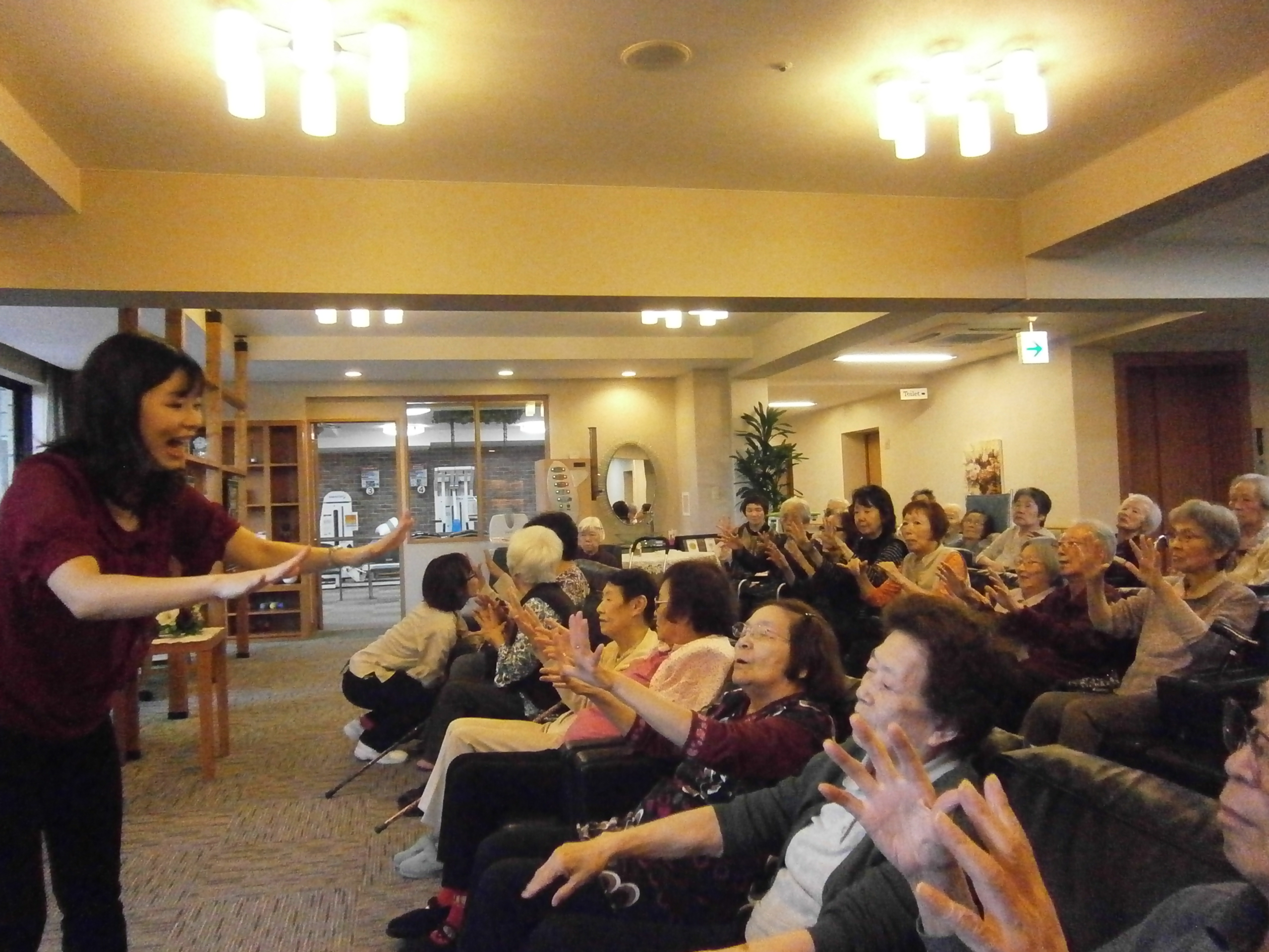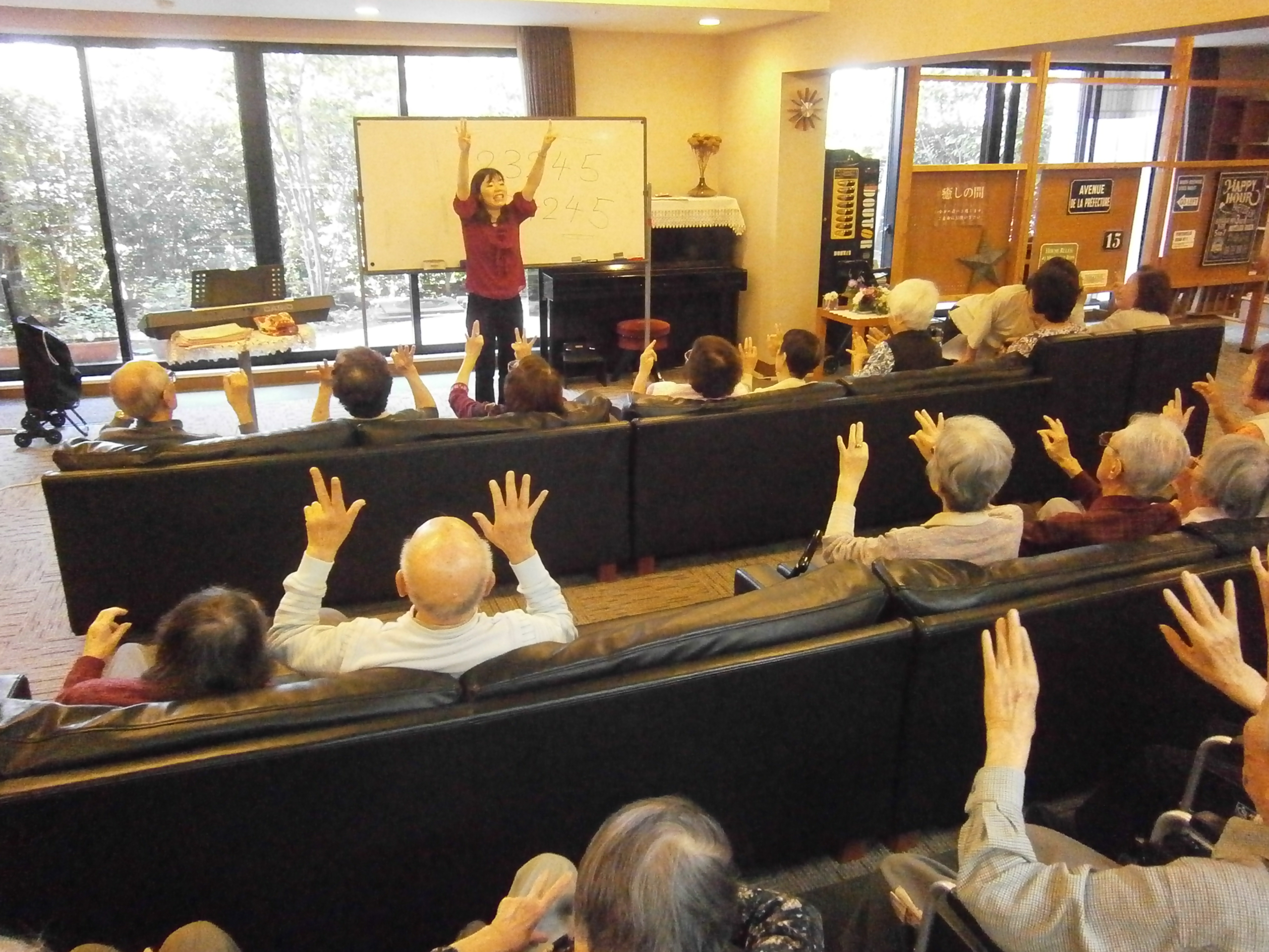 まずは、季節にちなんだ「里の秋」「荒城の月」などを歌い、季節を感じていただきます。