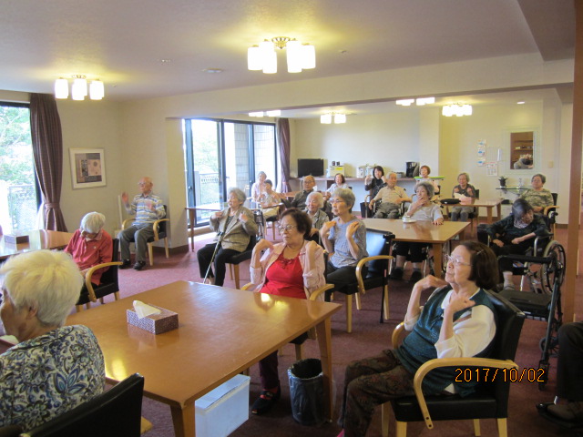 今日も元気いっぱい、音楽に合わせて体を動かしてくださっています。