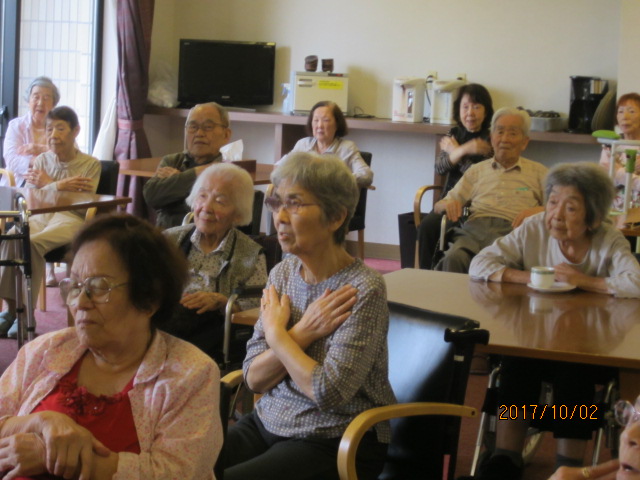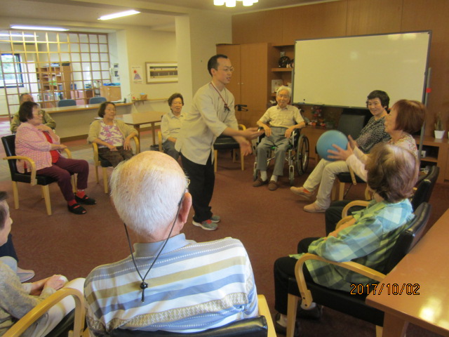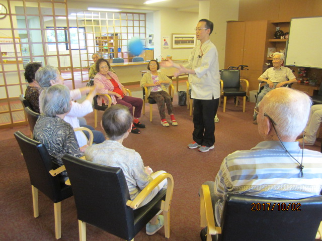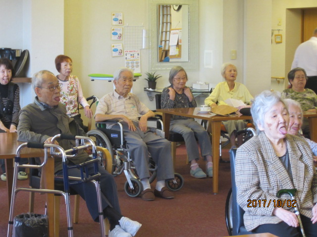 口を動かし、舌を動かしとご入居者様を先導したり、「おっ!皆さん上手ですね~」と褒めてくださって、先生こそお上手!!