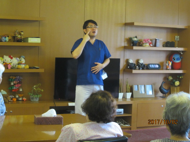 そして、今日は歯科往診の日なので、歯科衛生士さんによる口腔体操・・・の筈が、な、なんと歯科医師さんによる口腔体操です(゜.゜)