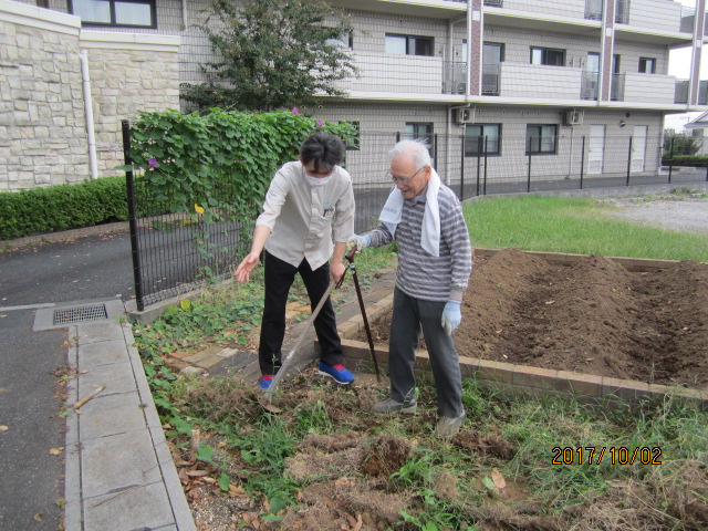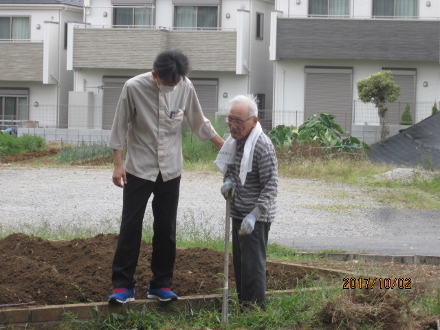 まだまだやりたそうでしたが、長時間になったところで、いつも通りリハビリスタッフのストップにより終了です。これで畑の準備はOKですね!