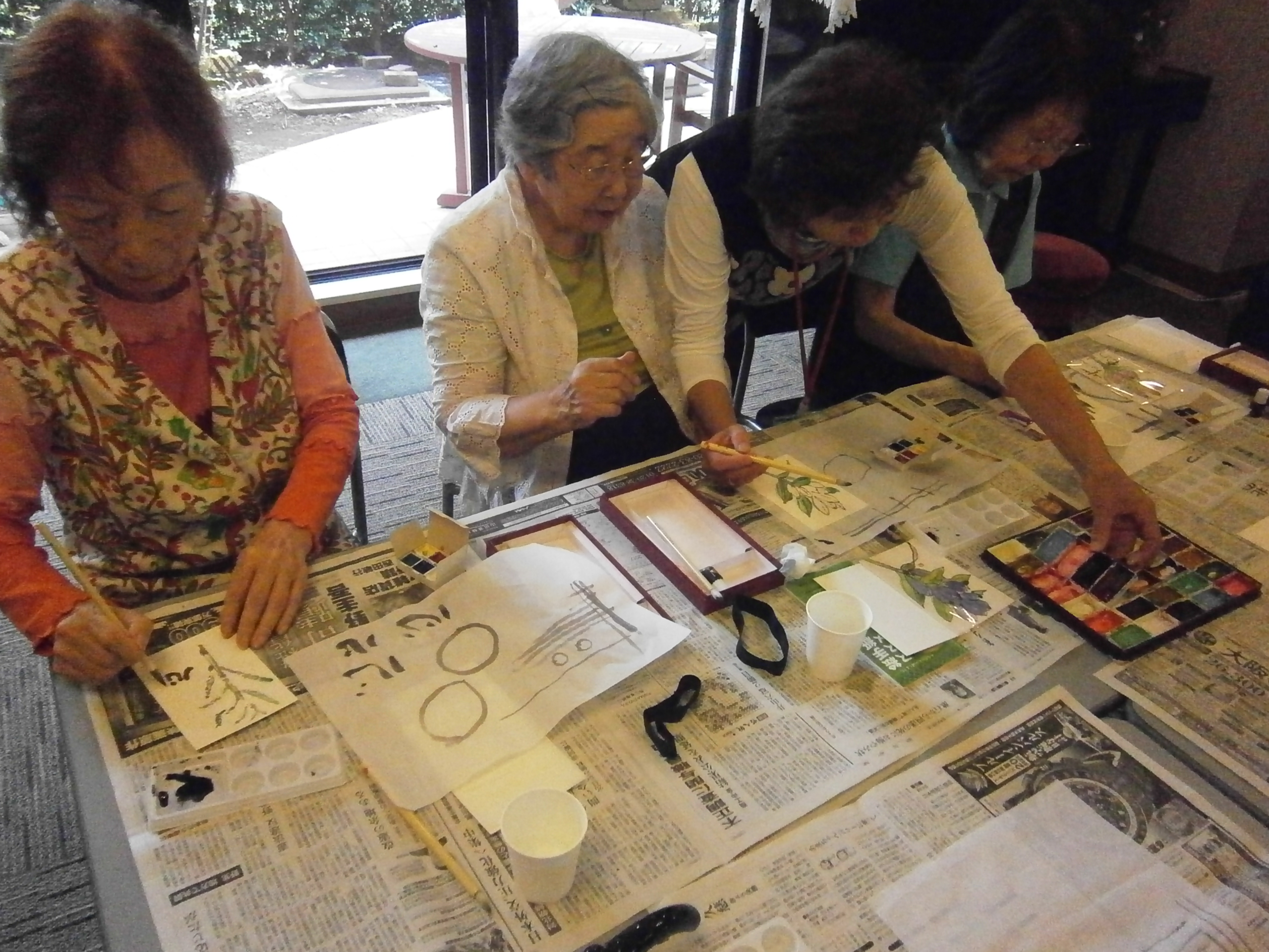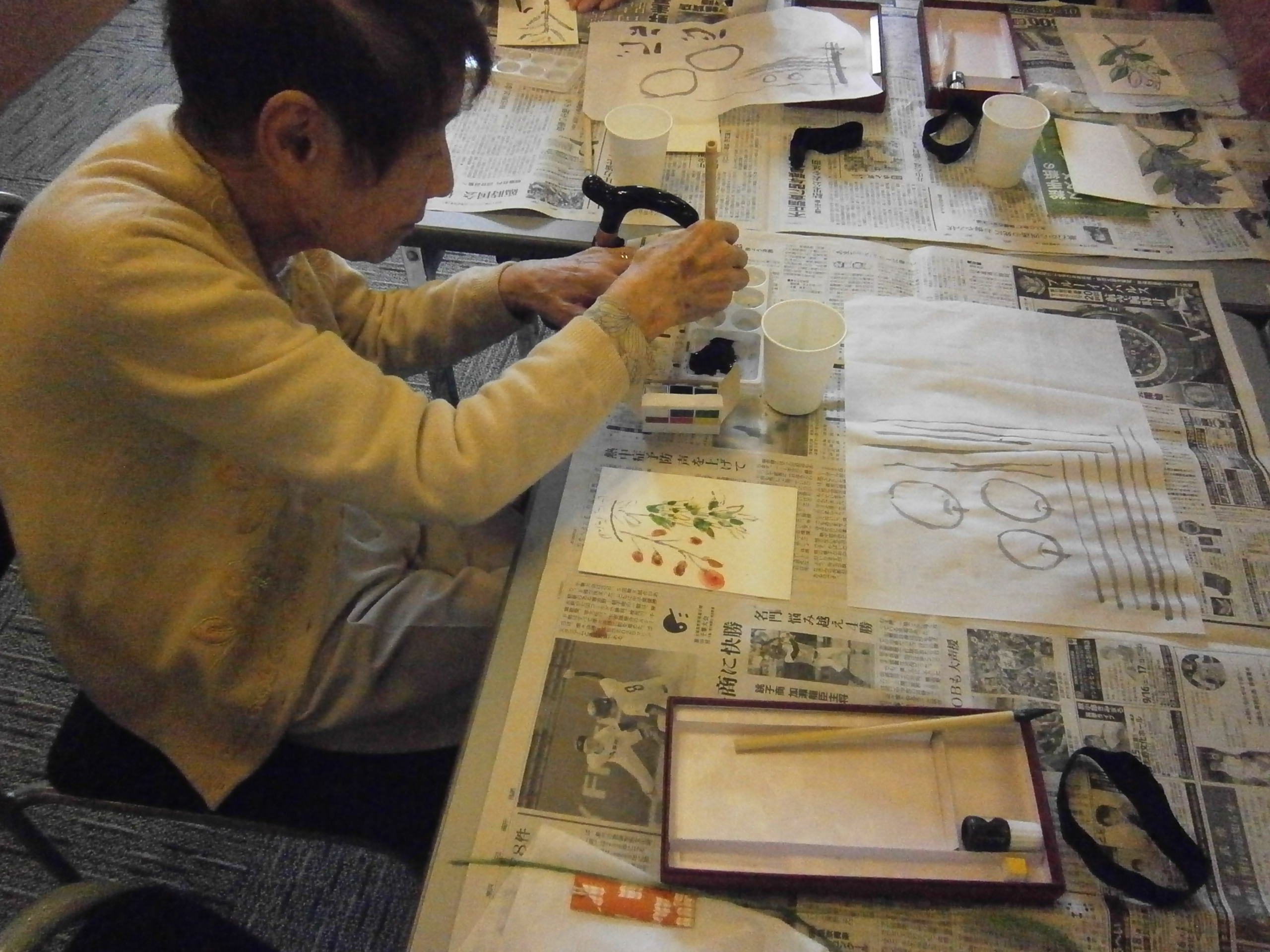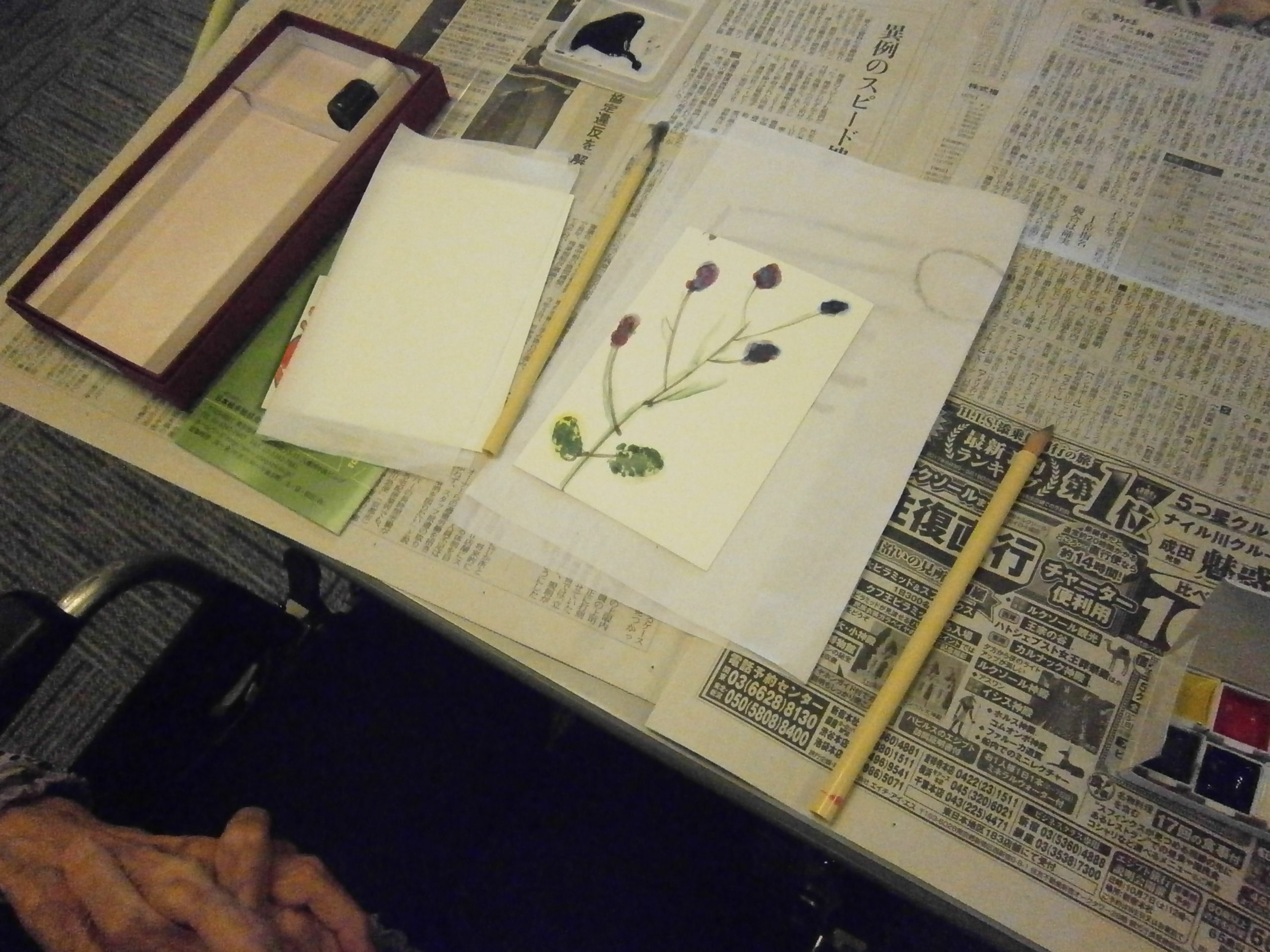 「手が震えるから・・・」と二の足を踏んでるご入居者様には、施設長自らお手伝い。立派な作品が出来ましたよ~
