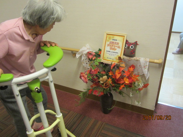 あまりに立派でリアルなものだから、ご入居者様も「コレ、本当に造花なの(・・?)」と興味津々。